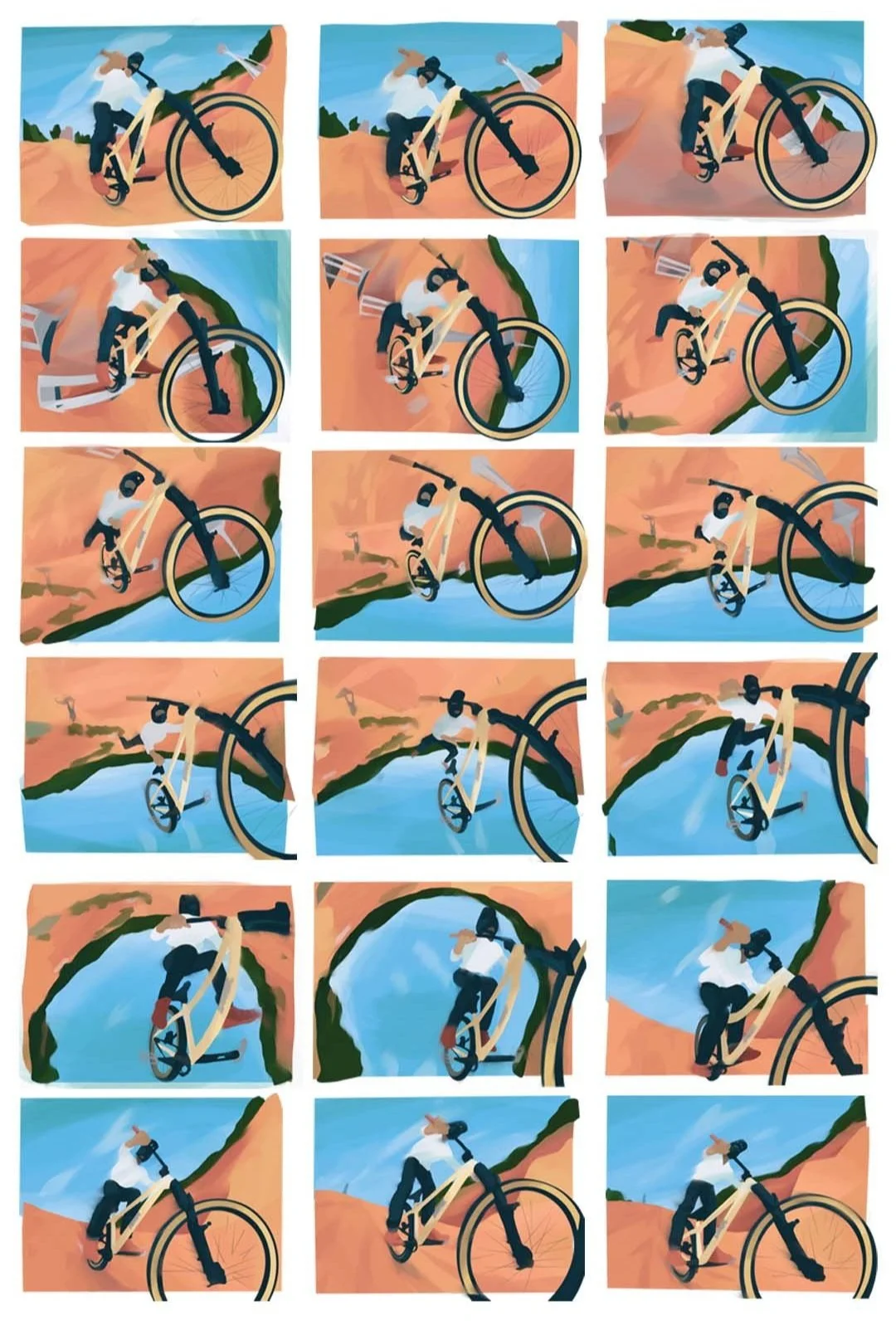My involvement entailed creating an engaging animation that showcased rider Sam Hodgson and highlighted the new frame, subsequently becoming the focal point of their online presence. Furthermore, I had the privilege of producing artwork for the brand's website and foyer wall.